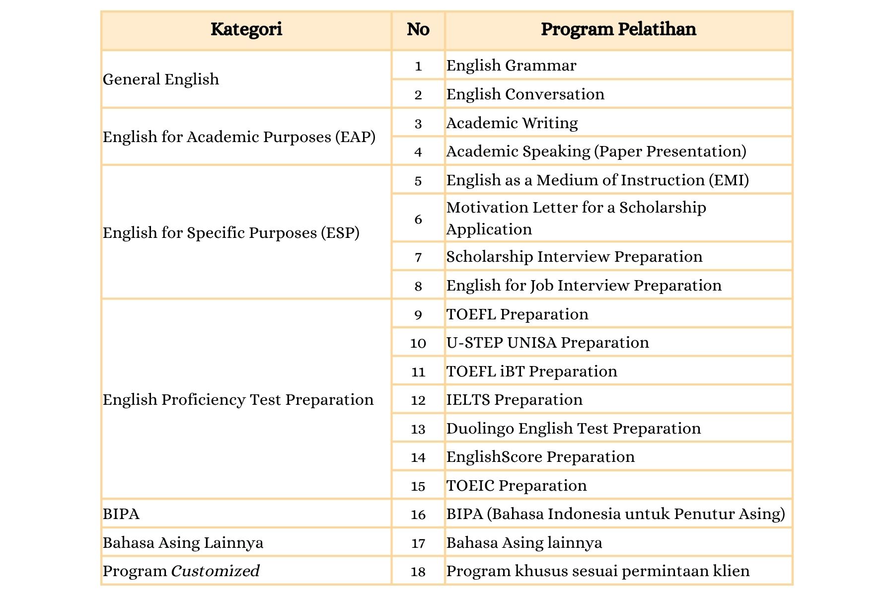 Program Pelatihan Bahasa